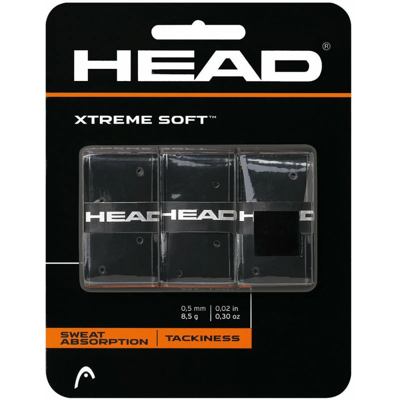 Head Extreme Soft tennis overgrips feature: Specially engineered elastomer material and extra large perforations. Ideal for all tennis rackets. Set of 3.
